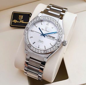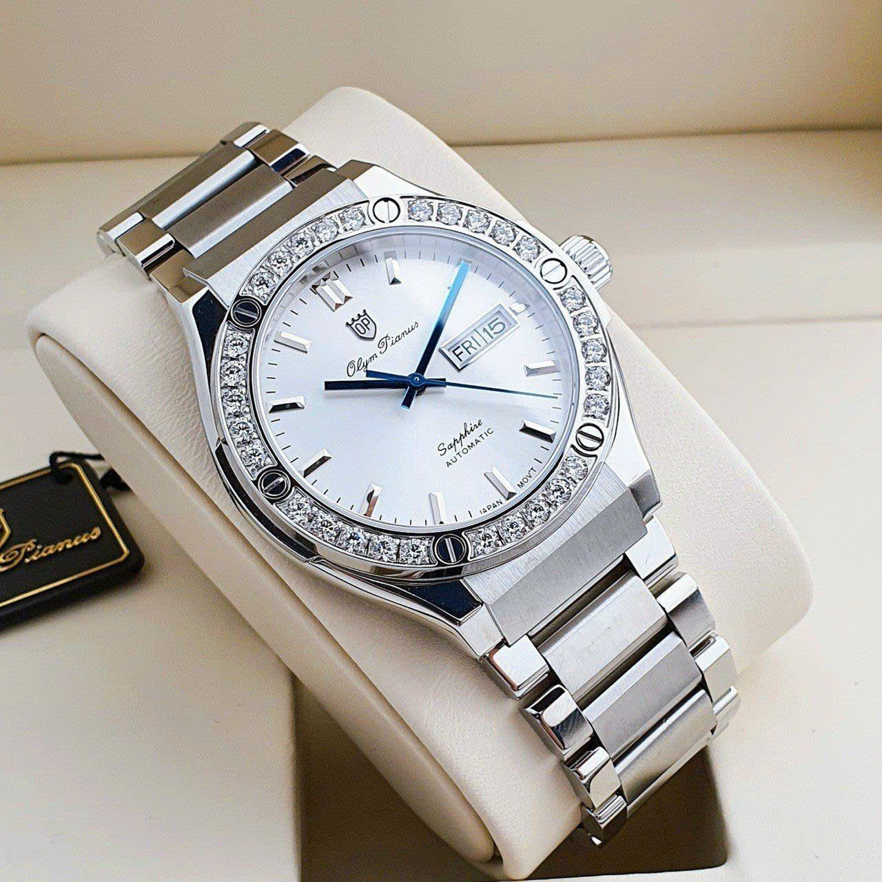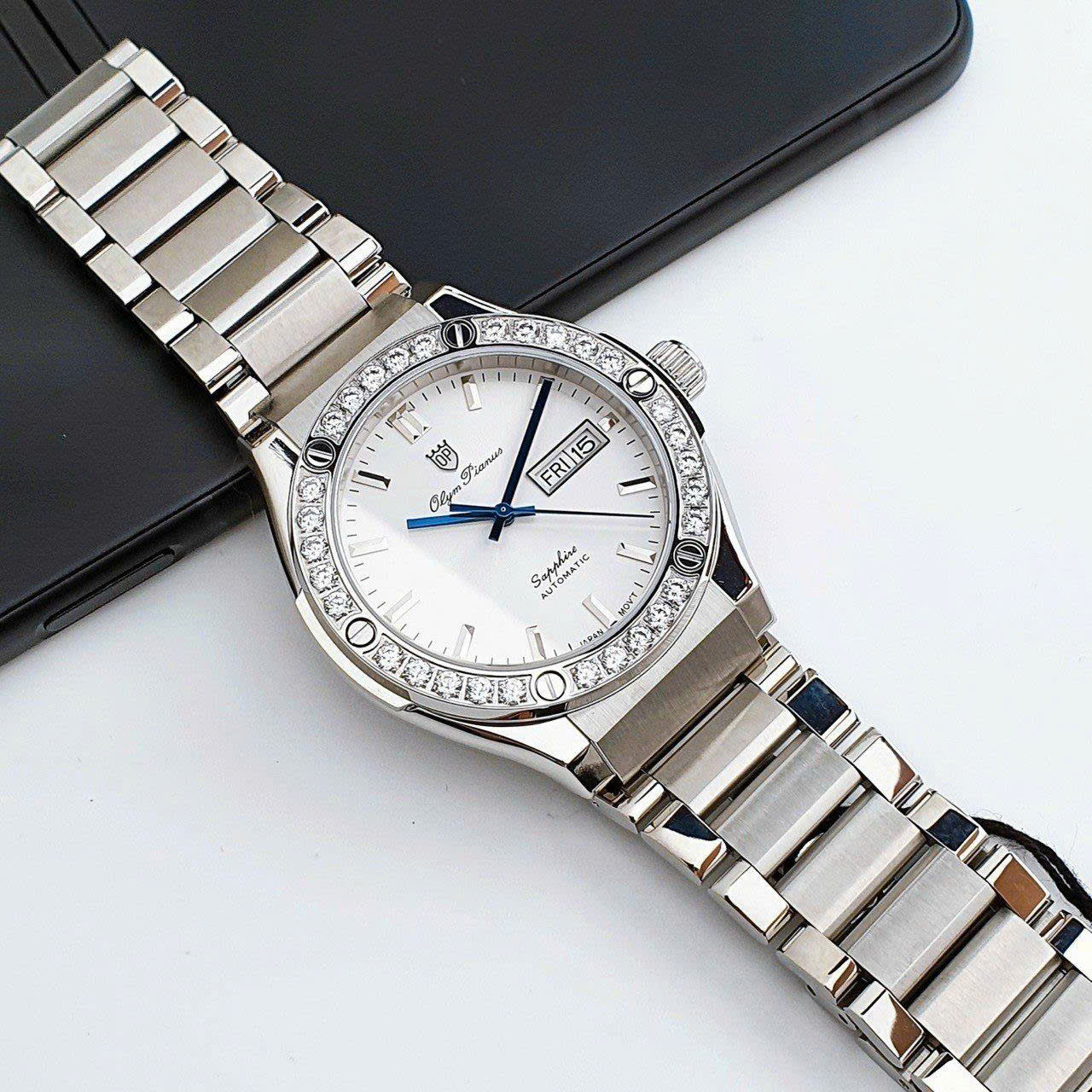| Mặt số | Nền trắng, Cọc số dạng thanh + La Mã tại 12h, Kim xanh tạo điểm nhấn sang trọng |