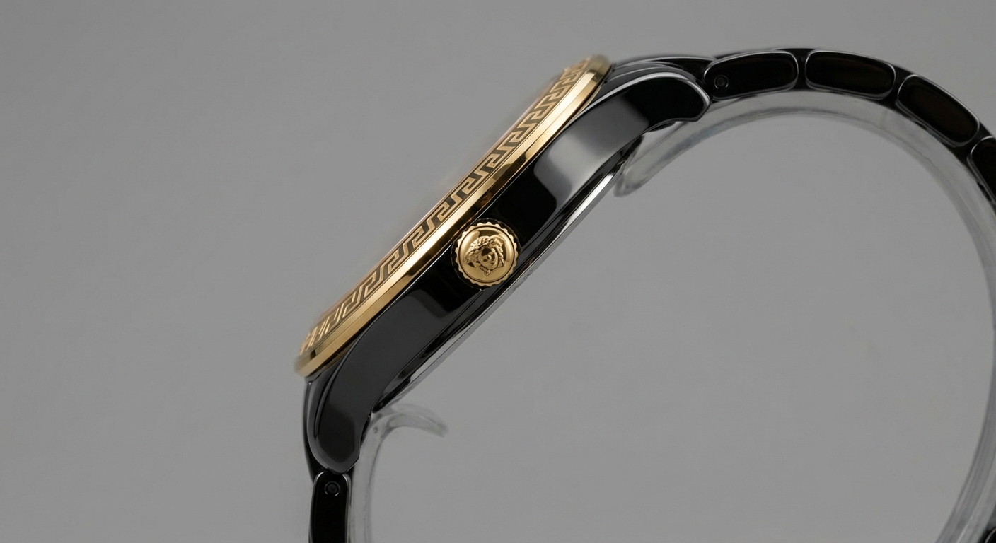 Hiện đại và bóng bẩy. Chất liệu gốm Ceramic đen cao cấp chống trầy xước tuyệt đối, kết hợp cùng các chi tiết vàng tạo nên độ tương phản sang trọng và bí ẩn.