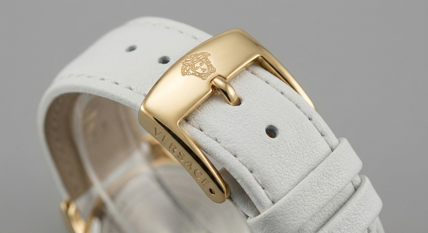Vẻ đẹp cổ điển đậm chất Ý. Mặt số La Mã thanh lịch kết hợp cùng dây da trắng tinh khôi. Viền bezel đính các hạt nhỏ tạo hiệu ứng lấp lánh nhẹ nhàng.